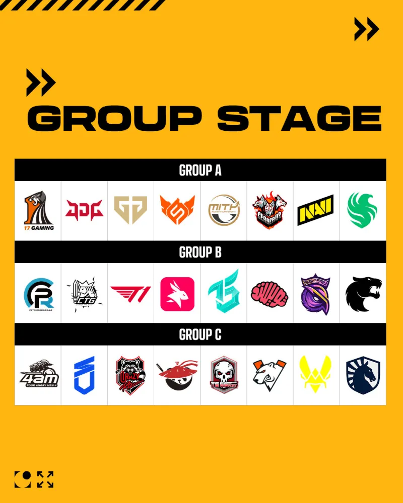 生存组(周五):16支战队(PGS 1后8名 + 胜者组后8名)进行5场比赛